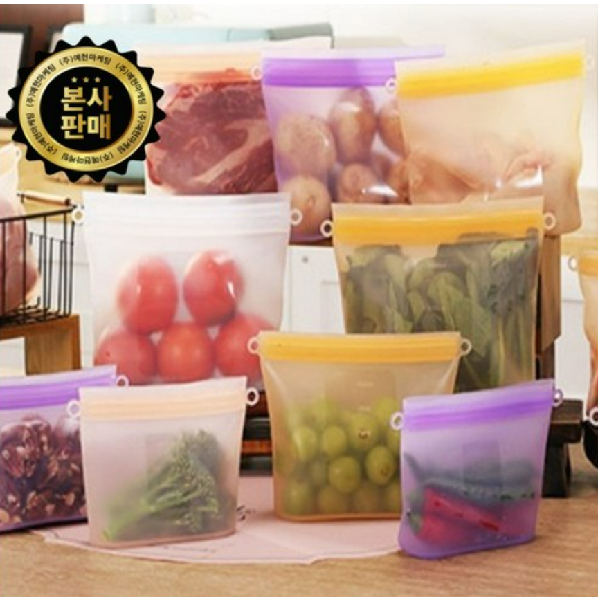 비닐 대신 실리콘 지퍼백 음식물 보관 및 냉동 재사용 가능, 환경 부담 낮음